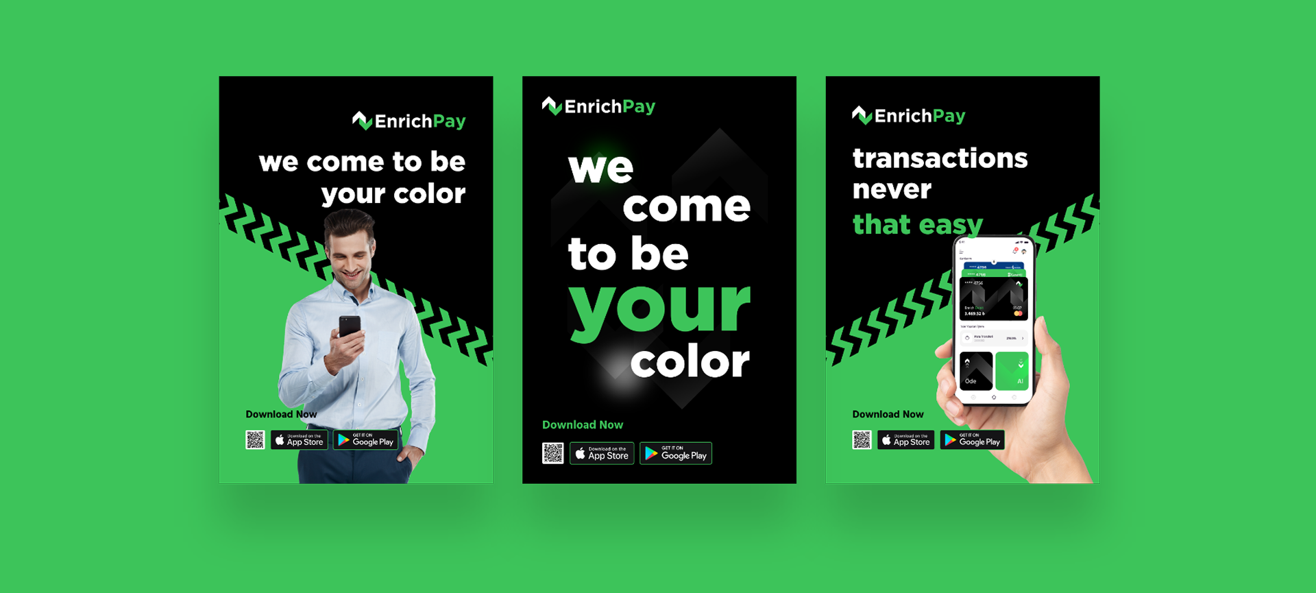 Enrich Pay, mobil ödeme alanında geliştirilen yenilikçi bir fintech uygulamasıdır. Marka kimliği, UI/UX tasarımı ve yazılım geliştirme süreçleri uçtan uca tarafımızdan gerçekleştirilmiştir. Modern arayüzü, güçlü altyapısı ve kullanıcı odaklı deneyimiyle dijital ödeme dünyasında hızlı, güvenli ve pratik bir çözüm sunar.