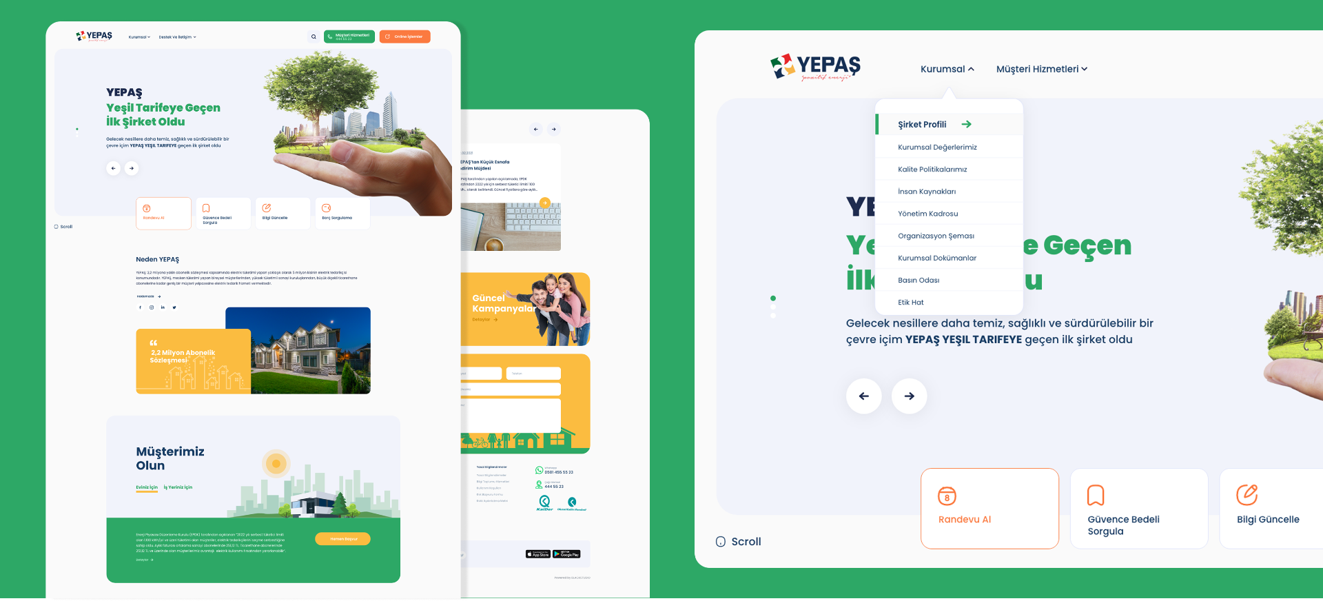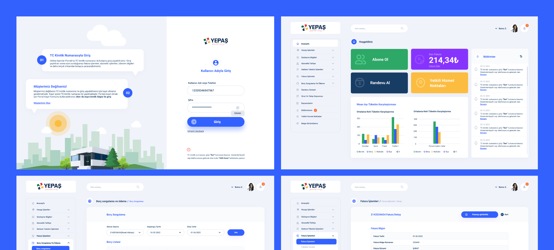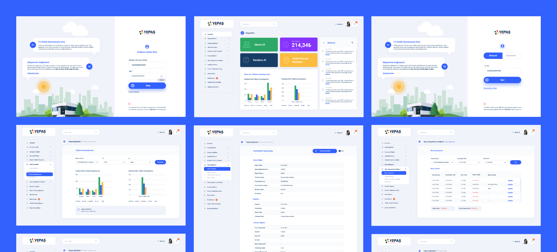 YEPAŞ için web, mobil ve dashboard platformlarını kapsayan uçtan uca bir UI/UX tasarım süreci yürütüldü. Kurumsal kimliğe uygun, kullanıcı dostu ve veri odaklı arayüzler tasarlanarak tüm dijital kanallarda tutarlı bir deneyim sağlandı.